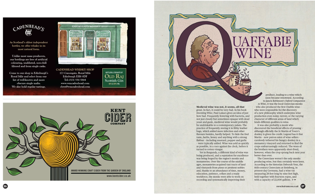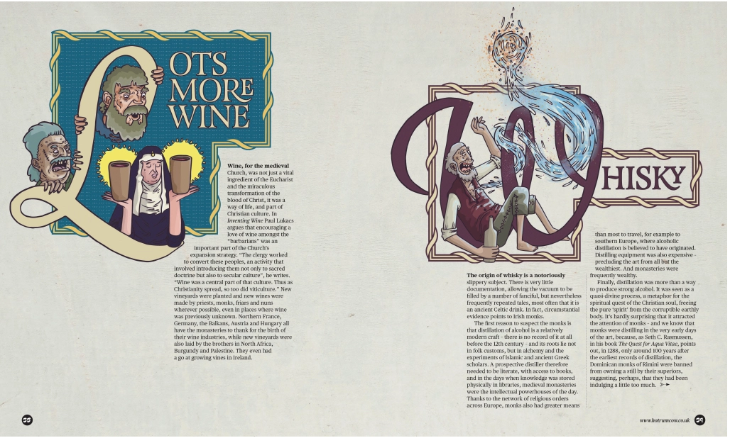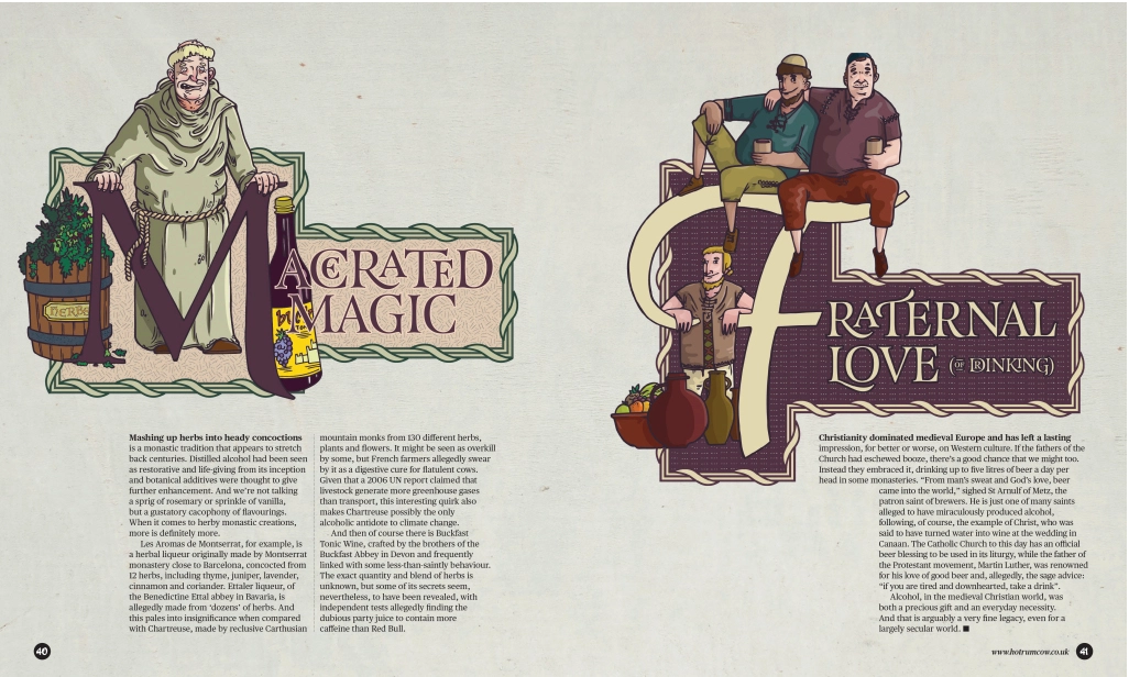 Cover Illustration and spot illustrations for 'Hot Rum Cow' magazine. Worked along side the creative director on layout and typography.