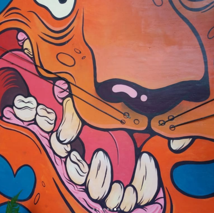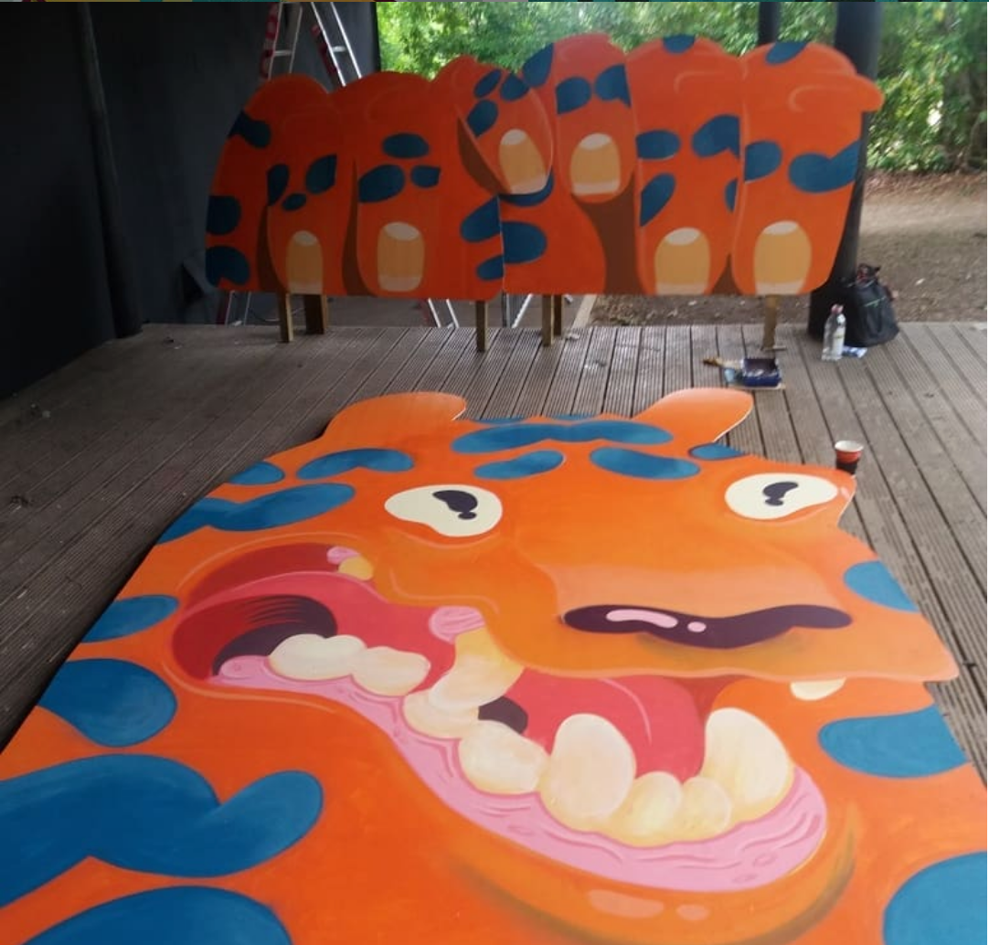 This is a 12ft tall wooden tiger that I designed, cut, built and painted for Kelburn Garden Party, a music and arts festival that takes place on the west coast of Scotland every summer.