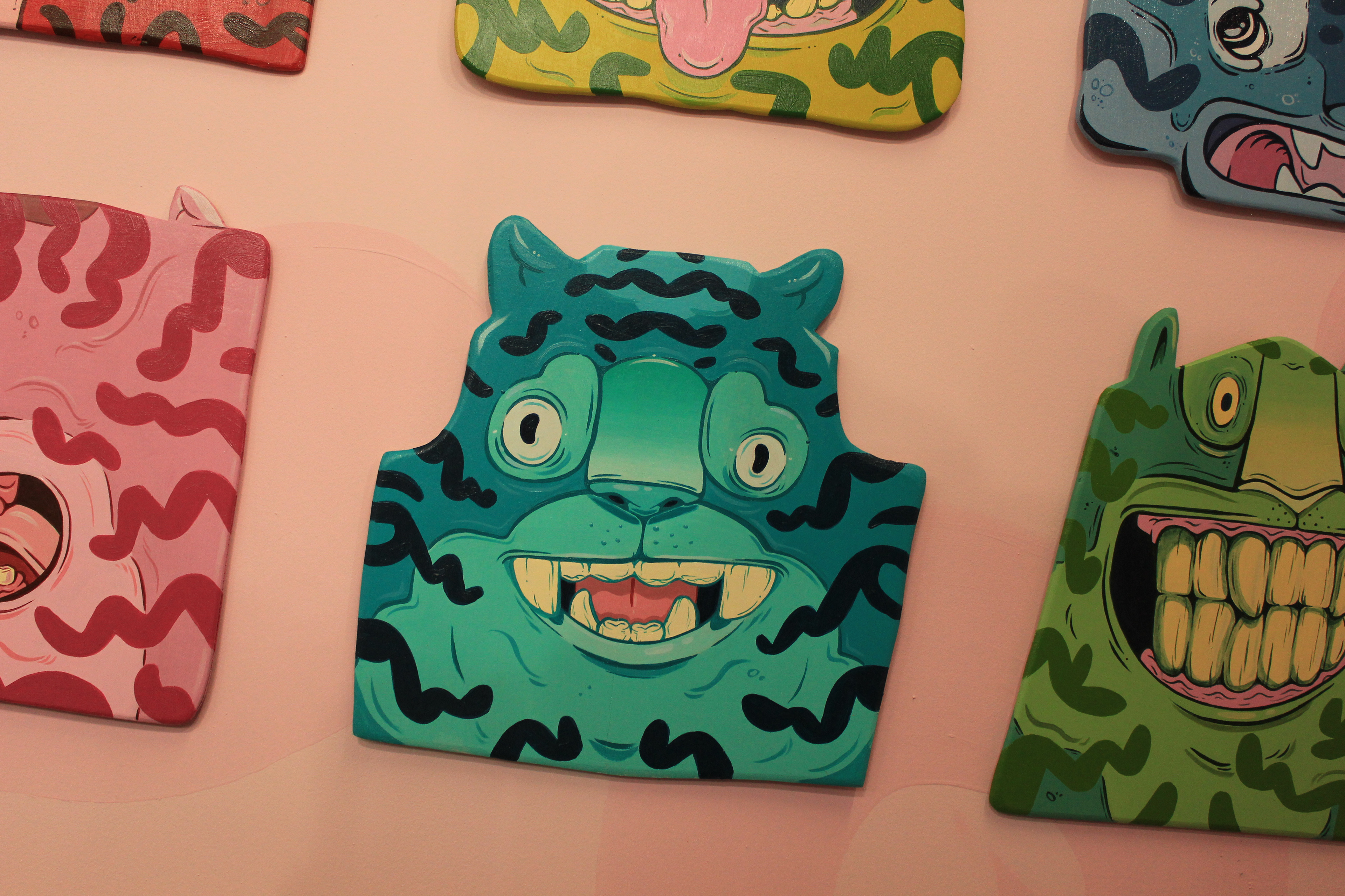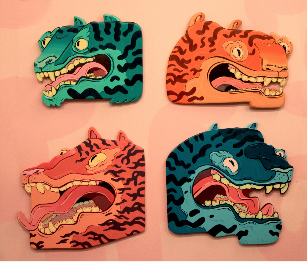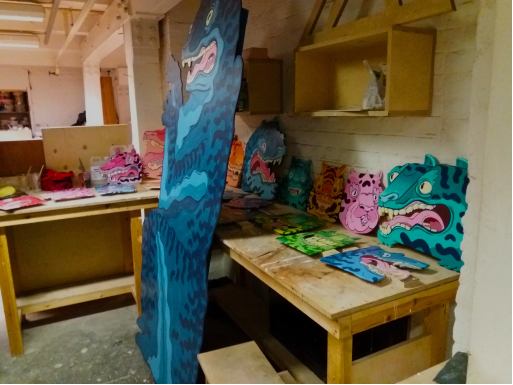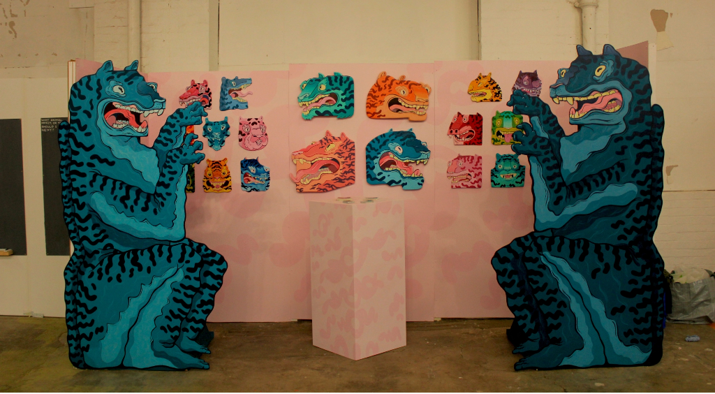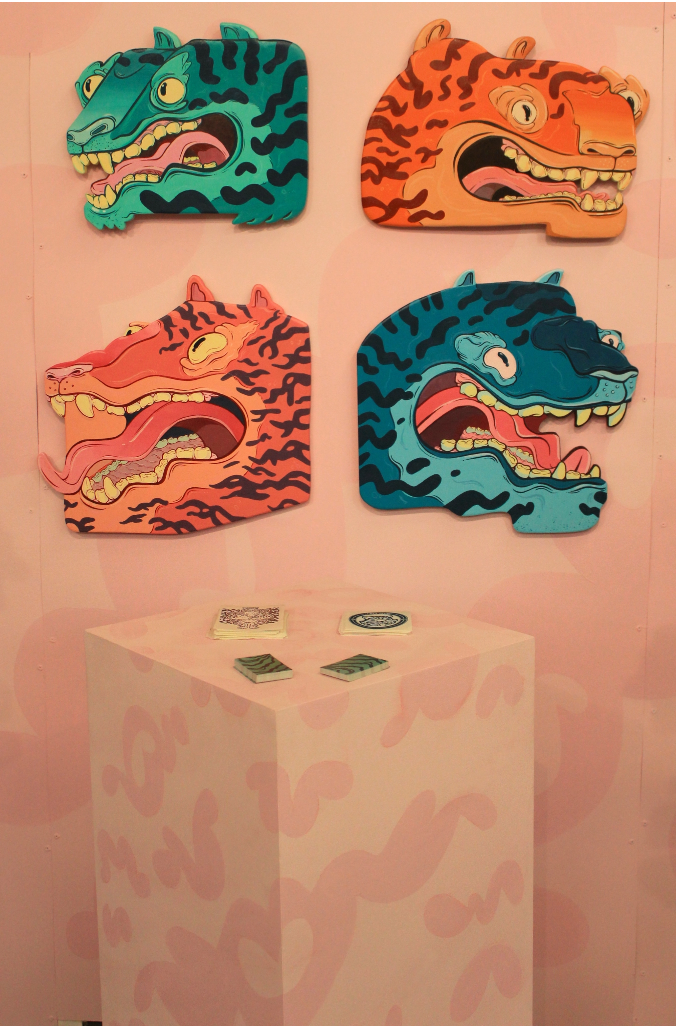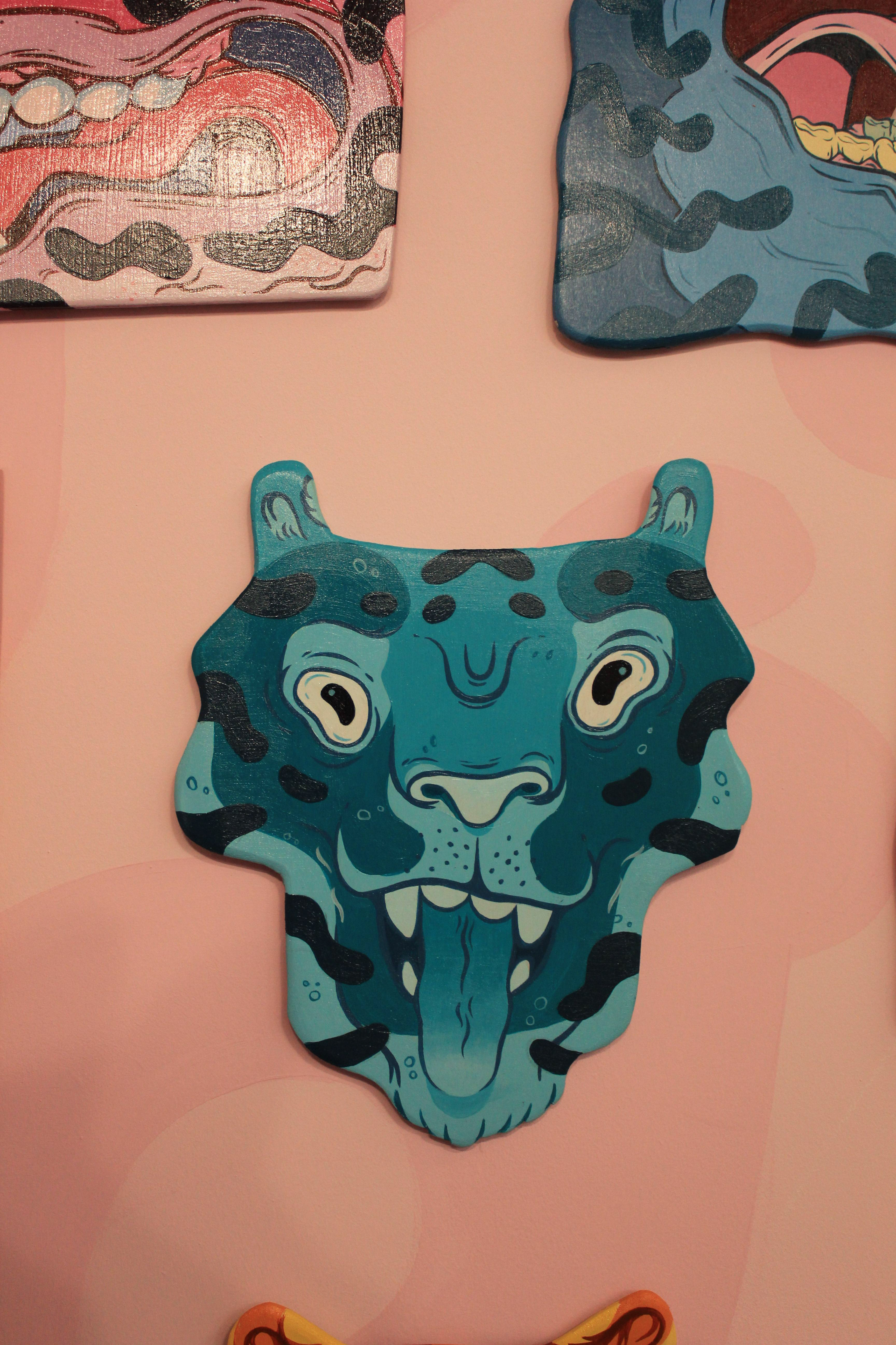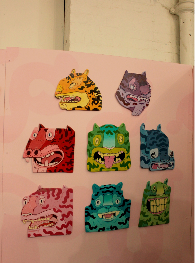 An exhibition booth created for The creative debuts art fair in peckham. Created 2 7ft tall plywood tigers along with 16 smaller tiger heads. All hand cut and hand painted.
